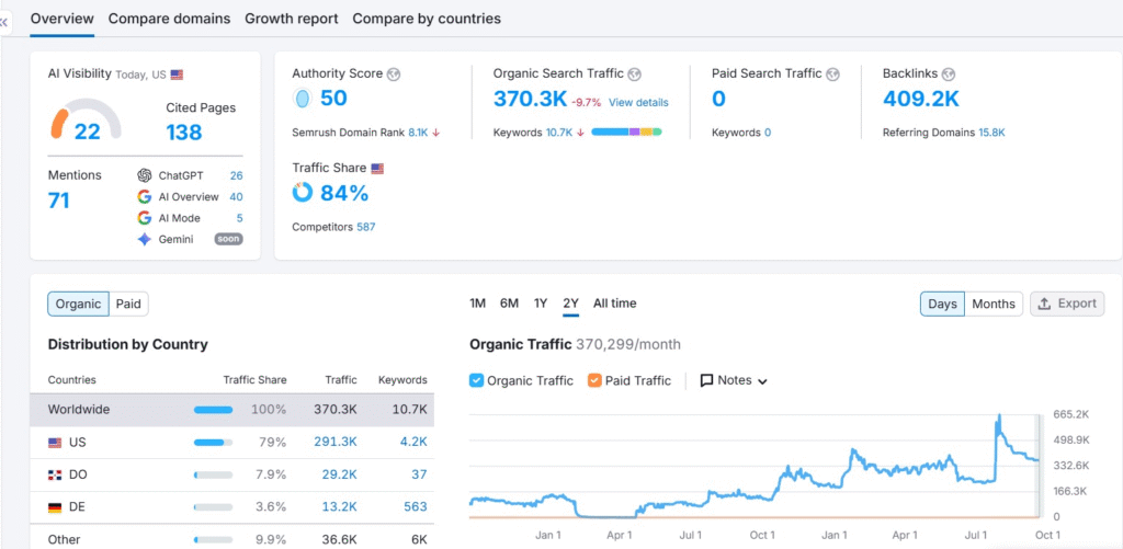 📊 SEMrush Traffic: 370K monthly
